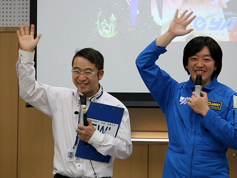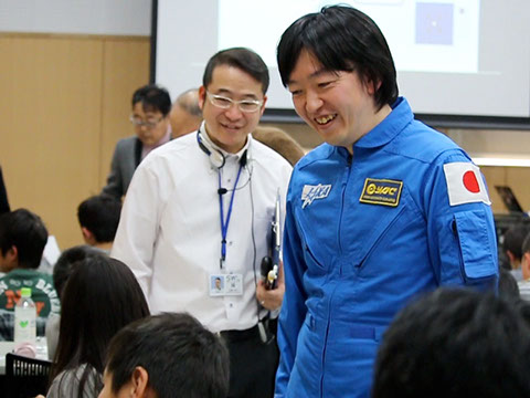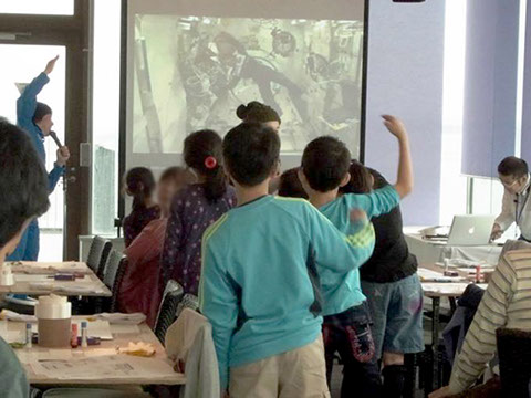 若田宇宙飛行士と一緒にラジオ体操。